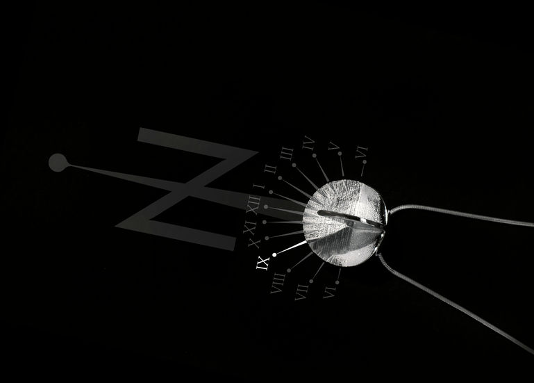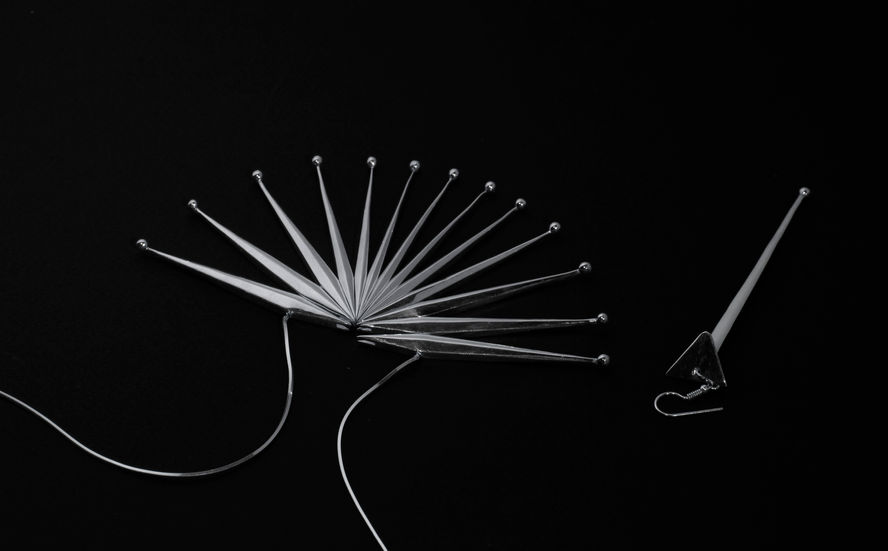 Each piece in Solaria is designed both for elegance and utility. In addition to their striking minimal and geometric aesthetic, they are functional sundials. Turn north, and the shadow of the gnomon falling on the hour indicators of your object will tell you the time. Objects come with instructions that explain how to use the necklace as a sundial. Carrying a sundial on one's body is not only about knowing what time it is, but more about constantly remembering our locus in space-time, which is nothing more than the fact that we are standing on a pale blue dot, lit by a giant star.